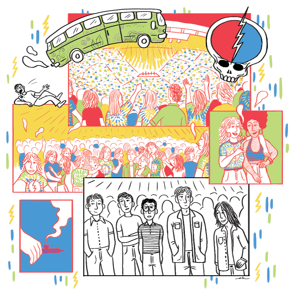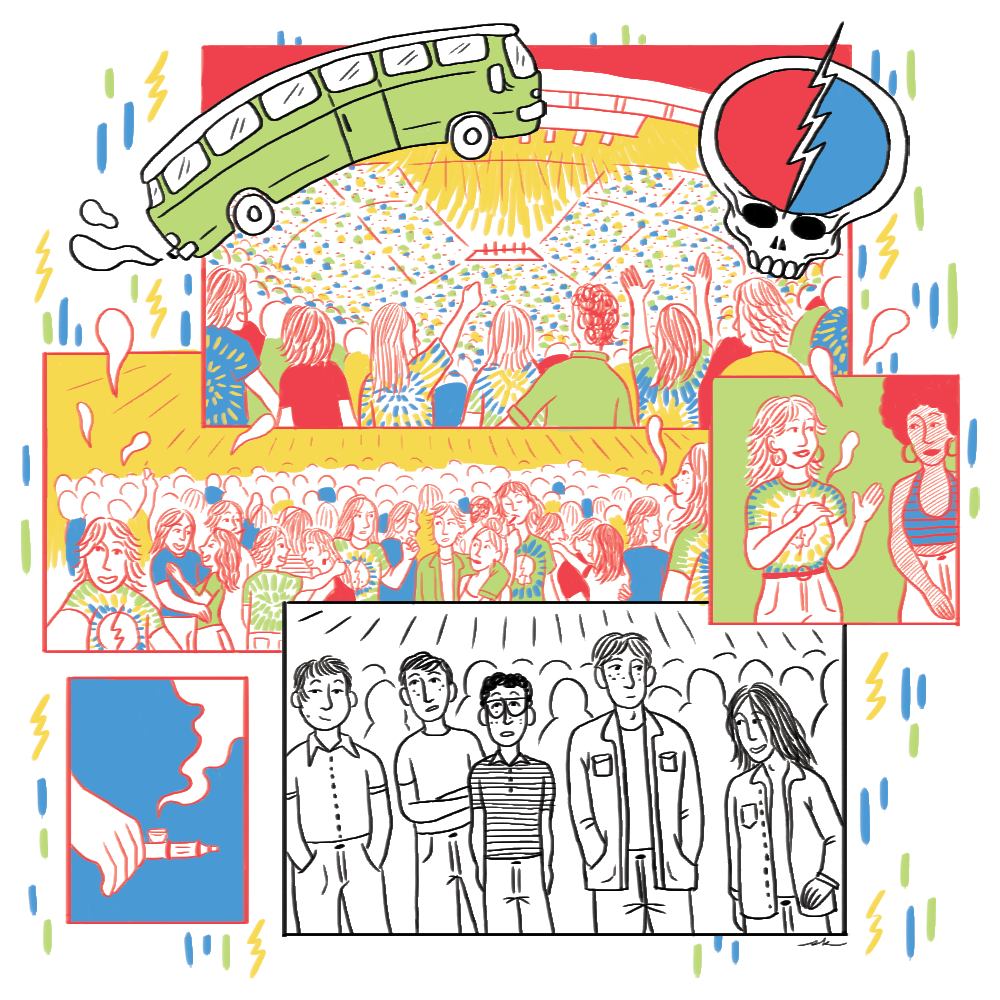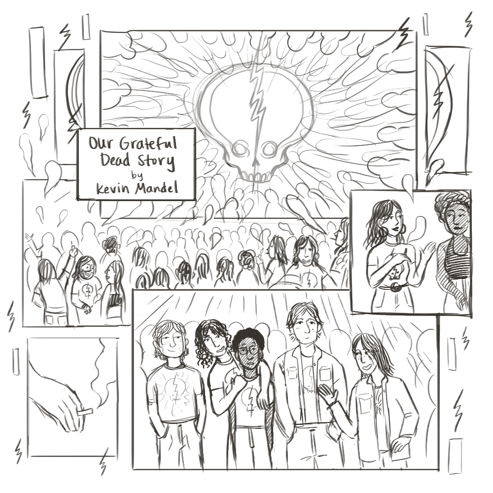 This illustration pairs with the short story Our Grateful Dead Story by Kevin Mandel. The story follows five teenagers at a long ago Grateful Dead concert, in what is really a kind of literary coming of age tale. Kevin and I worked hard on finding the right balance of color, tie-dye, and how to best represent the giddy, vulgar, and even violent expressions of youth. This piece was published in Midsummer Dream House magazine, June 2024 and was a Semi-finalist for American Short Fiction's 2024 Halifax Ranch Prize.